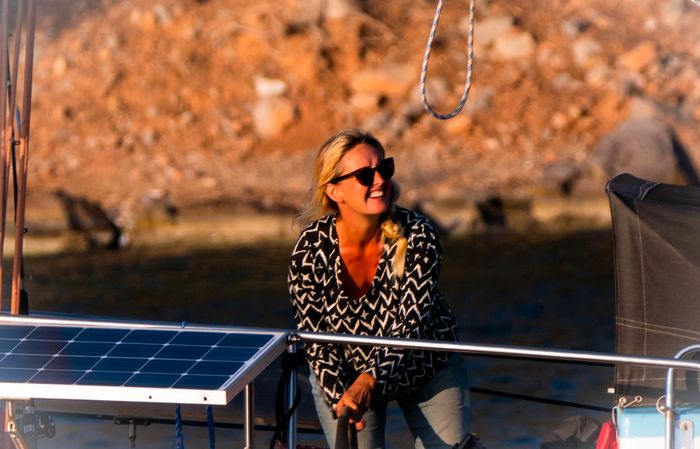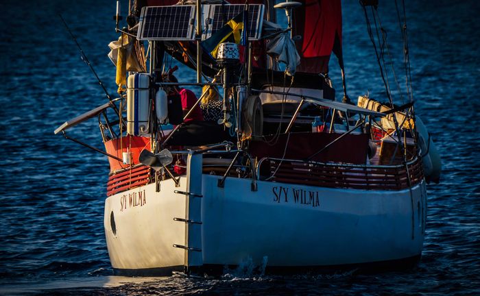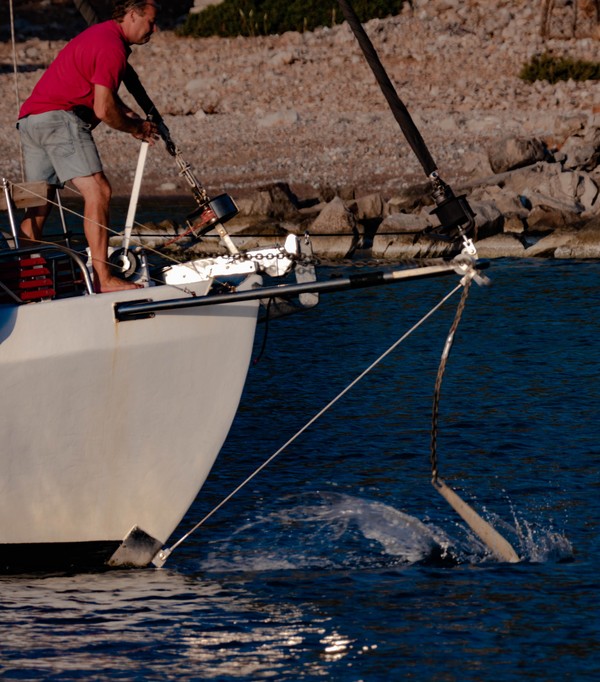 Inte hade vi långt kvar till platsen där vi tänkt sänka kroken, uppskattningsvis ett femtiotal meter, då ett ilsket och oavbrutet tjut plötsligt ljuder. Det kommer nerifrån styrhytten. Vi inser att det är ett motorlarm, men vilket?! Styrman som står vid rodret blir smått stressad, tidpunkten är illa vald. Skulle vi behöva ankra utan motorn så skulle proceduren bli ett äventyr utöver det önskvärda, intill oss låg en katamaran som vi behövde hålla undan för. Med en pålandsvind så hade vi ju fördelen att kunna driva in mot ett lämpligare ankringsdjup, men å andra sidan skulle vi få problem om ankaret inte tog – för då skulle pålandsvinden obönhörligt putta Wilma in på för grunt vatten. Bonk i botten kände vi inte alls för.