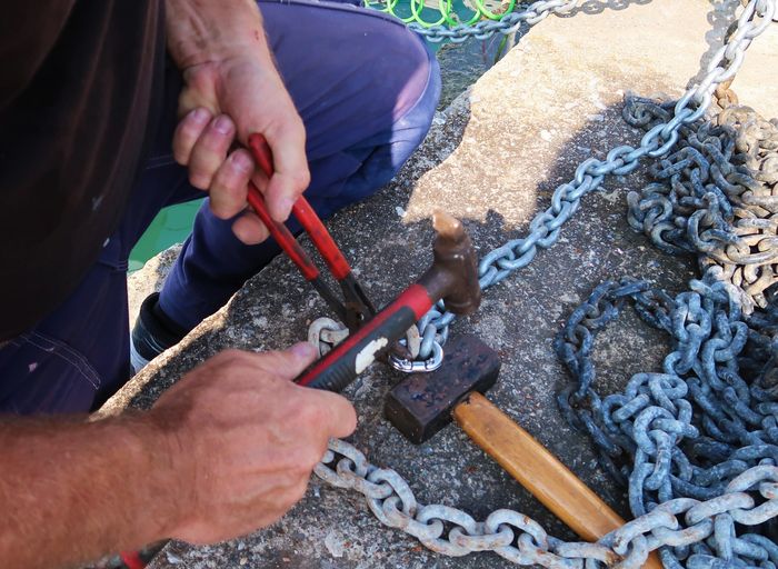 Med gott om plats i hamnen på bortsidan av polackernas båt så kommer vi överens om att göra en förflyttning. Med gemensamma krafter lägger vi polackernas båt längs med kaj och en bit bort från Wilma. Därefter valde vi att låta Wilmas ankare sitta kvar men istället flytta aktertamparna för att på så sätt få en annan vinkel och ett större avstånd till katamaranen. Våra båtgrannar hjälpte oss men att flytta tamparna tog sin tid för Wilma ryckte och slet i de bråkiga svallen så vi fick ta hjälp av vinscharna för att ha flera fästpunkter. Medan vi håller på som bäst så kommer katamarangänget tillbaka. Vi förklarar läget för dem men snart uppstår en dispyt. Den italienske skepparen är inte särskilt förstående och Kapten Betong räds inte sina ord. Hade killen bara lyssnat så hade inte situationen uppstått och nu hade hans dåligt omdöme medfört att våra båtar slagit ihop flertalet gånger. Italienaren själv kom inte med någon ursäkt alls, inte heller hade han något förslag till lösning och han tänkte inte flytta på sig. Nu hade vi visserligen löst det för vår del men de unga killarnas båt riskerade att skadas, de låg fortfarande inträngda mellan katamaranen och fiskebåten och de pratade vädjande med italienaren. Tvärtom började italienaren raljera över situationen och provokativt ta danssteg och sjunga samtidigt som han håller sin hand kupad över sitt könsorgan. För att spela ball och märkvärdig eller för att pissa sitt revir, vad vet vi. Då tände Kapten Betong till.