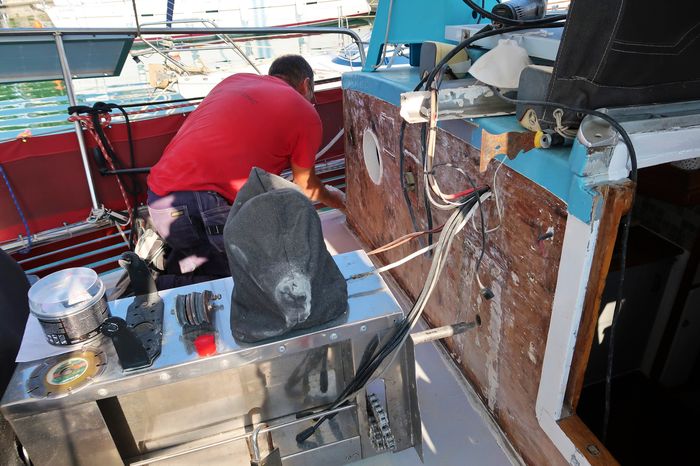 Snart vaknade vi av att Wilma rycktes i sidled och vi hörde röster. Kapten klev i sitt nyvakna tillstånd upp och ser då hur en bred katamaran håller på att tränga in sig mellan oss och de unga killarnas båt, fendrarna protesterade vilt mellan skroven. Den större delen av hamnen var vid tillfället helt tom på båtar så Kapten undrade såklart varför katamaranen skulle tränga sig in just här.