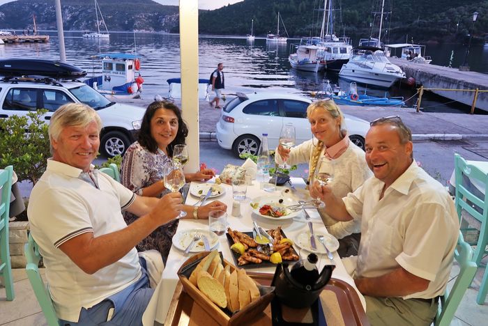 Själva skuttade vi ut på stan på nytt, nu för att skämma bort oss på en taverna med god mat. Det smakade sedvanligt gott och nöjda gick vi tillbaka till båten inte allt för sent, vi ville gärna hålla koll Wilma.