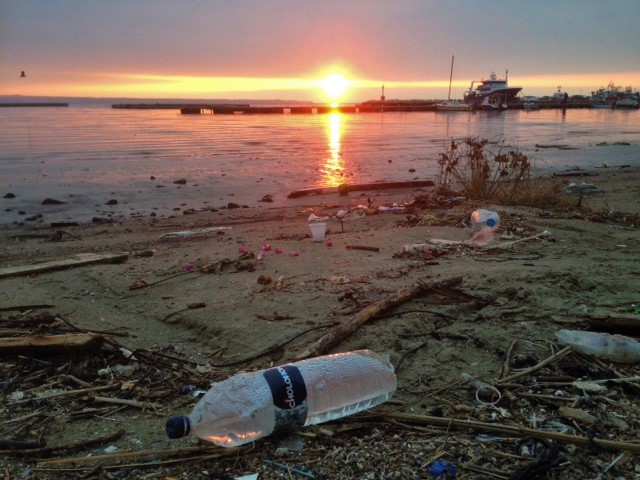 Plastkorkar, sugrör, glasspapper, snörstumpar, fiskelinor, tändare. Listan kan göras oändligt lång. Vid ett tillfälle ser Lina hörnet på (vad hon tror är) en chipspåse. Hon tar tag i fliken och upp följer en hel presenning. Mycket av plasten på stranden ligger halvt begraven mellan de olika sandlagren. Lina uttryckte gång på gång sin förskräckelse över situationen, på såväl grekiska, tyska som engelska – med en imponerande vokabulär som roade Styrman.