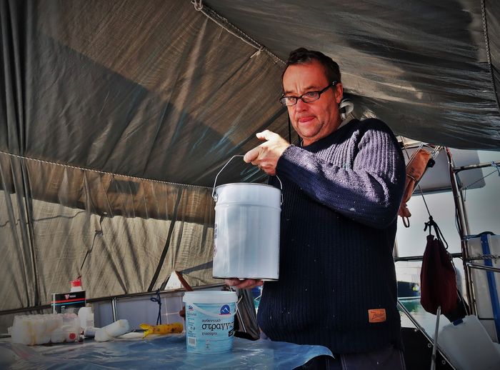 När vi ligger i hamn så jobbar vi med underhåll och förbättringar, här i Kalamaria…