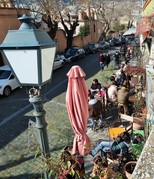 Innan vi åkte tillbaka till hamnen så tog vi oss en promenad och avslutade med en kopp kaffe inne på en bar som lovade skön värme, det hade börjat kyla på ute eftersom solen börjat gå ner. Vi pratade igenom dagen och vi var rörande överens om att vi ville återvända hit. Men att vi gör det med Wilma. Framför allt så skulle vi vilja besöka Kavallahuset och titta närmare på den koppling som finns mellan Sverige och Grekland, inte minst genom den gamla tobaksindustrin. Men sen fanns det så mycket mer att se som vi inte helt enkelt inte hunnit med. Faktum är att få turister hittar hit. Men det gör ju bara platsen mer grekiskt genuin.