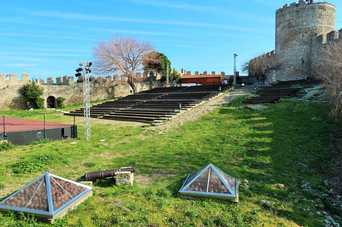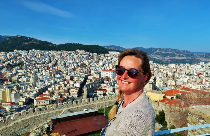 Tappra promenerade vi vidare, upp mot toppen av staden och den gamla borgen. Utsikten därifrån var värd mödan opp. Vilken utsikt! Innanför den yttre borgmuren anordnar man teatrar och konserter och högst upp i tornet ser man ut över hela stan; hamnen, akvedukten och husen på ena sidan. Vänder man sig om så har man hela havet och ön Thassos ett stenkast bort.