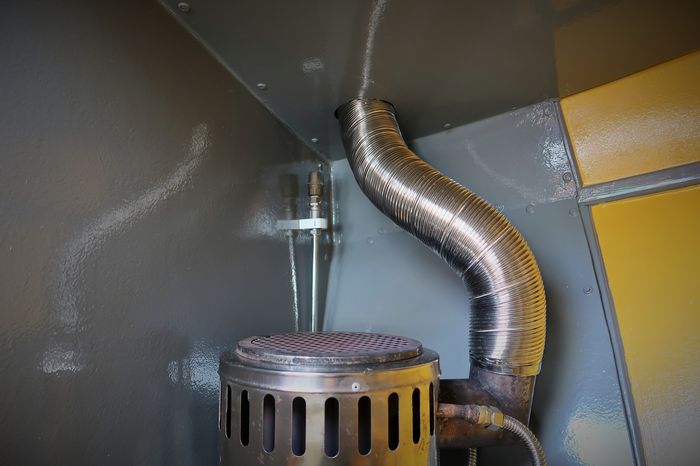 Hålet för skorstenen tätades och det inre skorstensröret ersattes med ett nytt. Ny färg i tak och på väggar. Golvet (ja ja…vi vet att det heter durk) hade några sprickor och golvet plastades och målades. Toalocket och toasitsen hade skavda märken efter ett gäng år i trogen tjänst. Vi hade redan innan pandemin kollat vad en ny toalettsits skulle kosta, hisnande 80 euro – vilket vi tyckte var för dyrt. Istället införskaffade vi en burk vit sprayfärg för 4 euro och sitsen blev som ny. Vi passade även på att göra rent avloppsrören, invändigt!