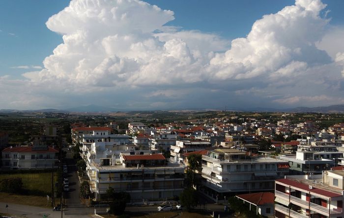 Nea Kallikratia sett från ovan. Staden byggdes upp för ett hundra år sedan när greker och turkar utväxlades efter grek-turkiska kriget. Detta var en av platserna de hemvändande grekerna slog sig ned på…
