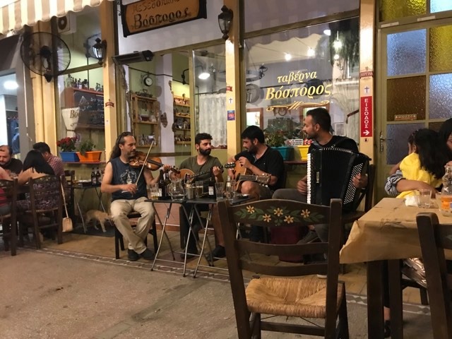 Kavallahuset är byggt uppe på en höjd och när huset uppfördes fanns nästan ingen annan bebyggelse här. Idag trängs husen desto mer på denna kulle. Känslan av en grekisk motsvarighet till San Francisco slår oss med de branta backarna som leder ner mot havet. Ena kvällen fann vi en restaurang i en gränd och gästerna var idel greker. Fyra musikanter spelade och sjöng och stämningen var fantastisk. Vi kunde inget annat göra än att slå oss ner. Den enkla men vällagade grekiska maten är svår att inte förälska sig i – tomater som smakar tomater, tzatziki, oliver, gratinerad aubergine, grillad ost och en välstekt köttbit med en citronklyfta till. Plötsligt faller alla greker in i en allsång, alla utom vi som vare sig kunde text eller melodi. Vid bordet intill reser sig då en kvinna upp och hon sätter sin armbåge i Styrman Pimpstens sida, som stöd och hjälp för att vi ska klara sången. Hon sjunger och visar och ögonen glittrar på kvinnan. Hennes gest att vilja inkludera oss gör oss alldeles rörda. Kanske att damen hade lite vin och ouzo innanför den storblommiga klänningen, men kärlek var det likväl.