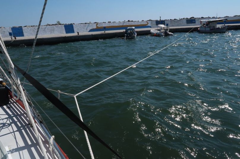Så kom då dagen vi skulle göra loss. Vi hade tänkt att backa ut i samma spår som vi kom. Men det är alltid en chansning för Wilma har noll precision när hon backar, på grund av sin tyngd, sitt utanpåliggande roder och långa köl. Så när sista förtöjningen var släppt puttade vi ut aktern, sen började vi backa i spåret som det elektroniska sjökortet visade. Men snart tog vinden tag i Wilma och plötsligt var vi ur vårt spår och vi kunde inte längre backa på grund av nya stenar. På kajen stod ett par grekiska fiskare. Nu kunde männen inte längre koncentrera sig på sitt, utan med fullt fokus stod de och såg på när vi manövrerade Wilma mellan stenblocken. Vi kunde riktigt känna hur de höll andan. Kapten talade om för Styrman var stenbumlingarna låg och försiktigt, med små korta förflyttningar, lyckades vi till slut göra helt om, utan att gå på grund. Sakta lät vi därefter Wilma driva med vinden ut från det grunda, mot det djupa. Sen la vi på gas och styrde ut ur hamnen.