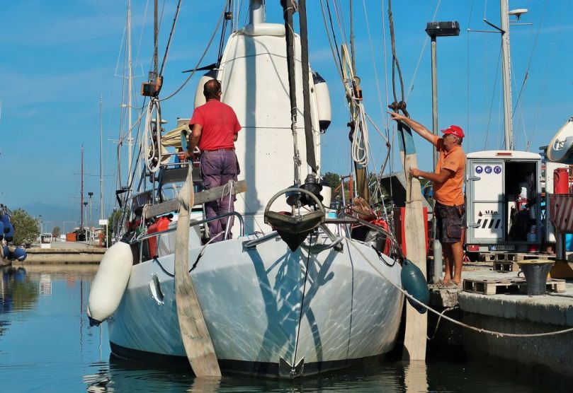 Senaste dagarna har Kapten ägnat sig åt att runda av vassa kanter som skaver mot förtöjningslinorna när vi lägger spring (för er landkrabbor; spring är ett sätt att förtöja båten). Kapten kapade rostfria rör och slitsade dem på längden, därefter knackade han dit dem och svetsade. De rostfria rören har vi seglat runt med i tre år, vi fick dem av en kompis som byggde om sin båt. Detta var i Gibraltar och vi surrade dem utmed med Wilmas mantåg, innan vi vinkade hejdå och seglade österut. Nu kom de till användning. Förutom att arbetet var gratis (svetsen drivs av solkraft) så kommer denna lösning förlänga livslängden på våra tampar. Man ska aldrig förringa de små jobben!