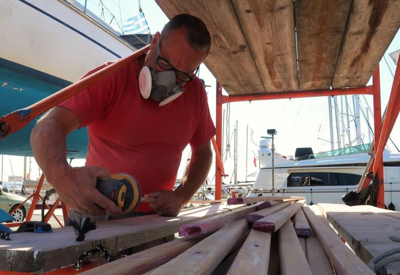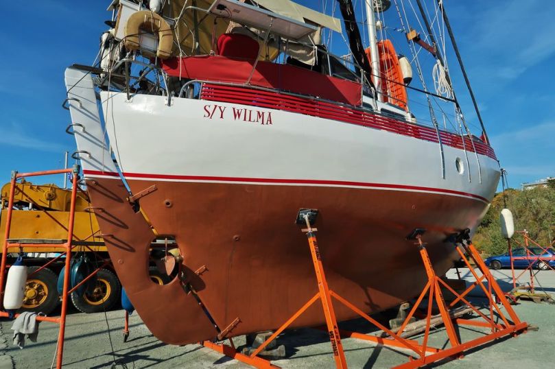 Quite often we give vent for playfulness, even in difficult situations. How fun is it really, to fix a leaking propeller shaft on a boatyard in Greece without right conditions. Where spare parts can not be found and we lack materials, contacts and the right tools. To top it all off, a lockdown that has shut down most of the country, except possibly the grocery stores and pharmacies. In any case, a feta cheese or painkiller will not fix Wilma’s propeller shaft.