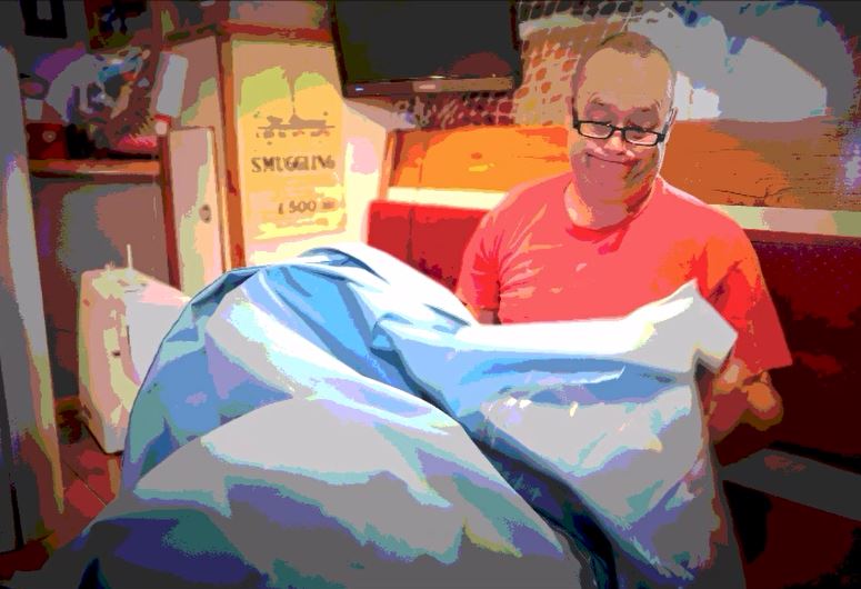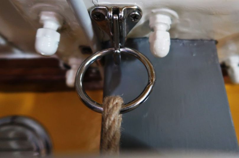 Styrman har också haft rulle på schemat, men av ett helt annat slag. Hon har tillverkat en toalettrulles-hållare av shock cord (resårband), tågvirke och ett beslag. Skithuspappret är nu staplat på höjden. Tio rullar rymmer lösningen och vi tycker det blev ”skitbra” för att uttrycka oss putslustigt. Nu behöver vi inte längre flytta runt vårt lager av toarullar, som vi gjort de senaste fem åren. Jämfört med Kaptens rulle blev denna konstruktion ännu billigare, kostnaden landade på noll då vi hade allt hemma.