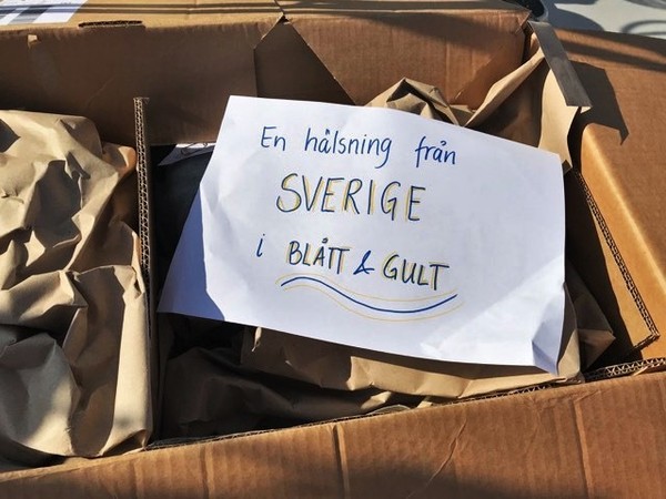 Nyfikna läser vi att paketet innehåller något blått och gult…från Kapten hördes hurret!