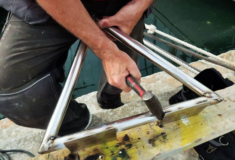 där allt från början ”bara” handlat om att måla skrovsidorna i den kalamatagröna kulörten. På dryga veckan blev vi förvisso klara, men i farten fick även durkarna under sängarna, luckan till helveteshålet och ramen runt ventilen bestrykas med