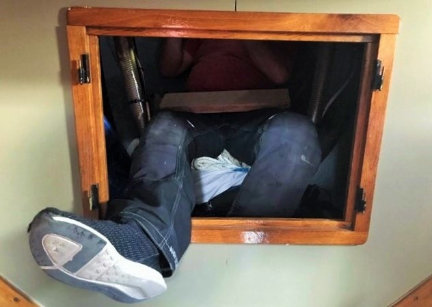 Batterilåda, eldragning och en ankarbox – lättast är att arbeta utan madrasser och sovande besättning i aktern.