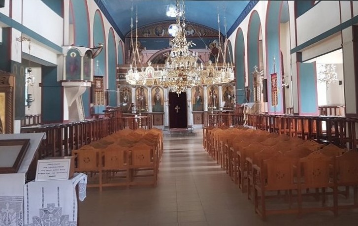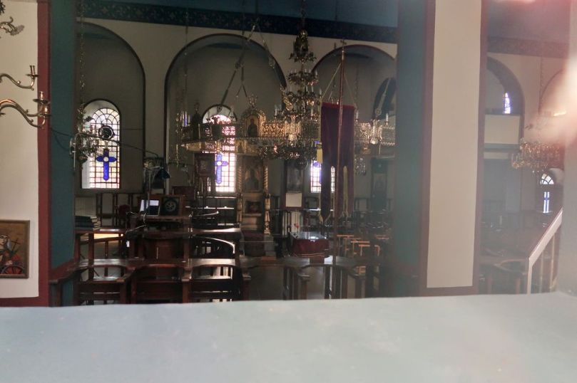 stenhus längs med sidorna, kom vi snart upp till kyrkan på toppen. Därifrån fick vi en vacker utsikt ner mot havet. Tyvärr var dörren till kyrkan låst, vilket var lite synd. För genom fönsterrutorna såg vi en ENORM ljuskrona hänga från taket. Vi gick