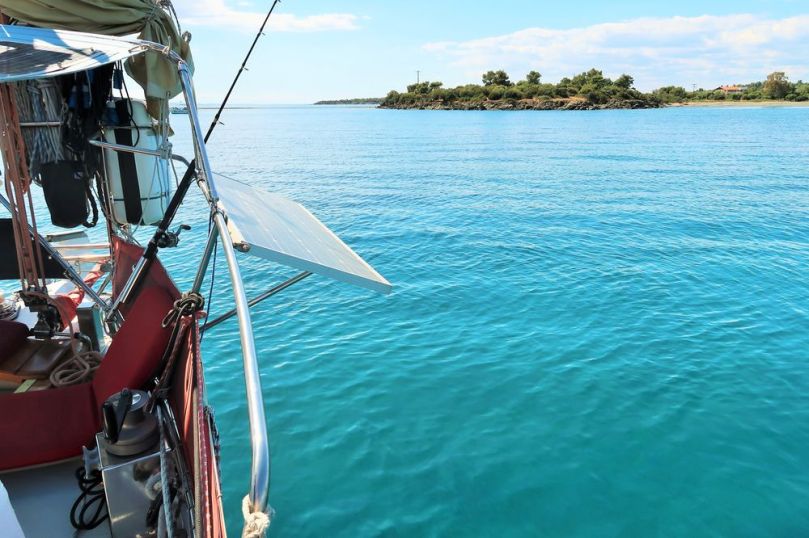 När vi senare på kvällen fick kontakt med våra tyska vänner, var de ute och seglade. I den starka medvinden ville de ta sitt långa ben ner till Volos, allt för att göra seglatsen tidsmässigt så kort som möjligt. Men i dessa vatten skiljer sig grundvinden