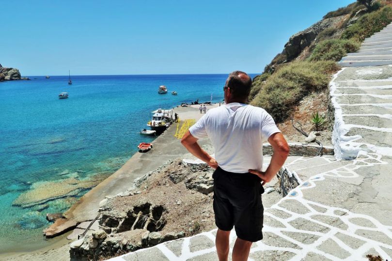 Vår förhållandevis snabba förflyttning sedan vi var på ön Ios, hängde till stor del ihop med de gynnsamma vindarna. Vi ville helt enkelt inte missa tåget (kan man säga så om båt???) Först stannade vi på ön Folegandros, en ö vi knappt visste existerade. Det vi mötte var möjligtvis Greklands mest avslappnade folk. Därtill var alla hyvens trevliga. Inte allt för många själar bor på ön och platsen är inte för dej som önskar hålligång. Den passade alltså oss och vi valde därför att stanna så vi fick en seglingsfri dag. Vi tog oss i land och njöt av öns lugna lunk och vi slog oss ner på ett café som bjöd på skön reggaemusik. Tjejen som serverade var förvisso brunett, men i övrigt lik skådespelerskan Cameron Diaz med sin breda mun. Med detta leende tog hon sig god tid att prata med gästerna.