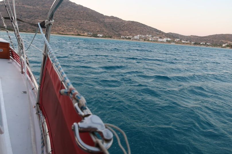 Nästa seglats, den till Milos bjöd på en fantastisk segling. Halvvind och lagom till eftermiddagsfikat kunde vi ankra upp vid något som i det närmaste såg ut som Dovers vita klippor. Skyddade från vågor och vind, men inte fullt mot svall. Därför passade det bra att redan nästa dag i tidigaste ottan, segla till Monemvasia (där vi befinner oss nu).