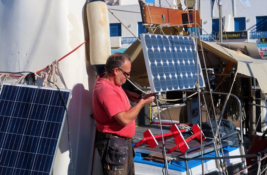 Ett par kanadensare här i marinan ville ge bort två solpaneler (modell äldre). Ja tack sa vi och nu har vi totalt 1650 watt solpaneler ombord på Wilma. Snart kan vi försörja halva Skövde på elektricitet. Verkar det over-kill? Tja, nu råkar vi ha en generös batteribank och sen är det jäkligt gott att kunna ladda även den mörka årstiden (förutsatt att man håller sig söder om den norra polcirkeln vill säga). Vårt system är sinnrikt och det fungerar som ett självspelande piano. Ungefär. Fast ljudlöst.