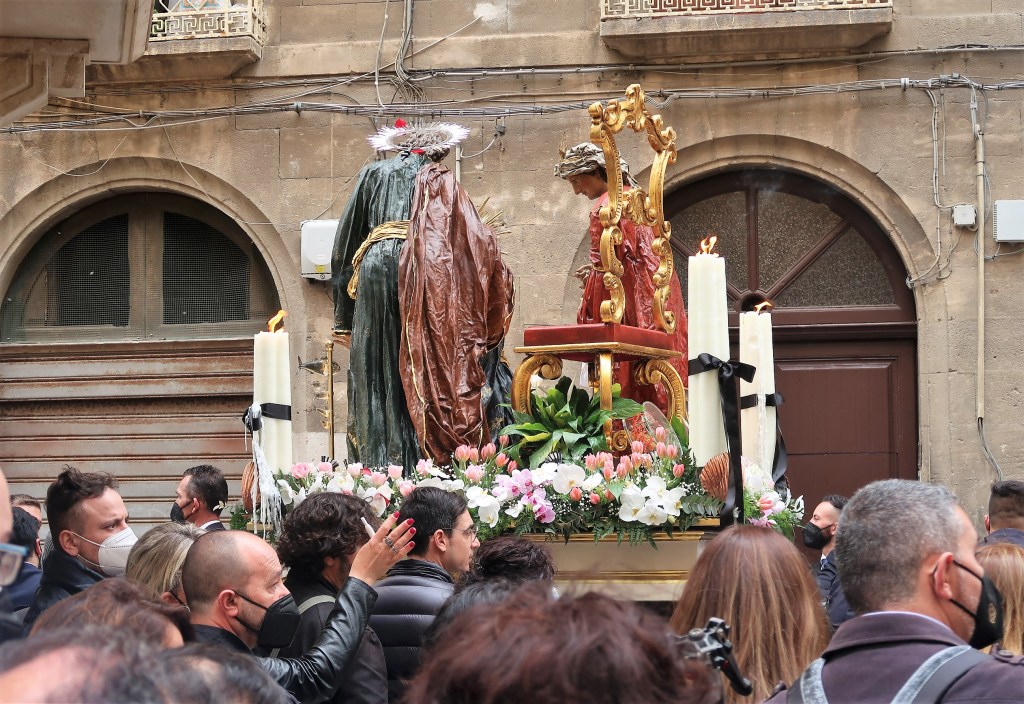 Trapani är vida känt för sitt påskfirande och i flera dagar släpas det runt på träfigurer i megaformat genom staden. Parader och musikkår, folk går man ur huse för att beskåda denna 400 år gamla tradition man ännu håller fast vid. Folkfest, ballonger och fyllda caféer blandas med sorgfylld och melankolisk musik som framförs av processionens musikanter. Paraden är en påminnelse om Jesu död och Kristi passion och för många troende är påsken en viktig tid på året. För oss framstod arrangemanget mer som ett potpurri, ett intressant möte mellan religiös tradition och gatufest. Ovanför folks huvuden sågs antingen heliumfyllda ballonger med Spindelmannen och My Little Ponny, eller den döende Jesus och hans arma moder Jungfru Maria. Hur pass de festklädda barnen förstod att det handlade om en man som för länge sedan hängde på korset, vet vi inte. Och kanske att de mer troende var av åsikten att minnet av Jesu korsfästelse börjat komma på glid. Vi låter det vara osagt.