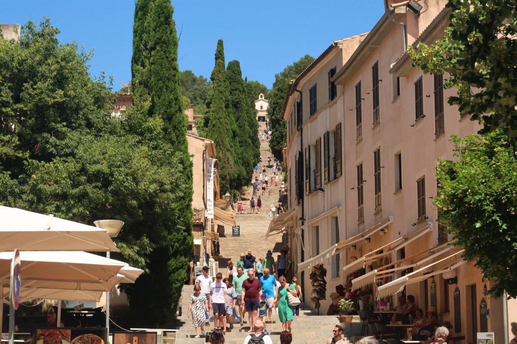 Pollenca Old Town ligger inklämd mellan två berg och vi hade inga direkta planer för vårt besök – annat än att strosa runt bland gränder, byggnader och torg. Samt äta lunch. Och såklart stappla de 365 stegen upp till det lilla kapellet Calvari för att titta på utsikten.