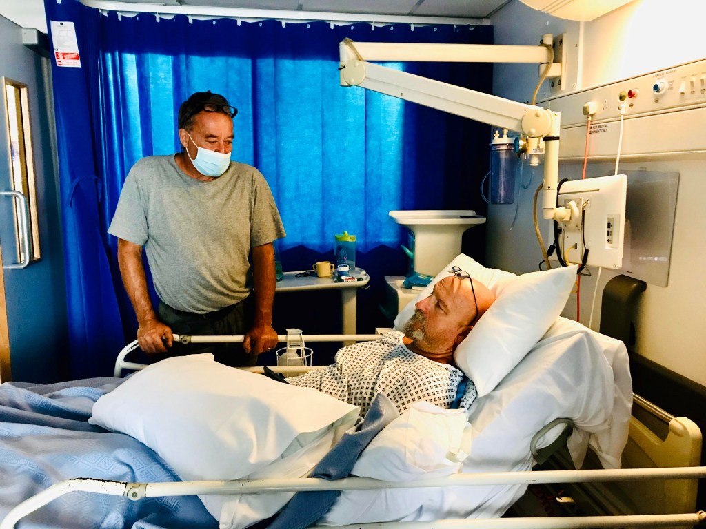 Idag har vi träffat Greg på sjukhuset, han är förlamad på vänster sida. Men inte hindrar det hans humor!