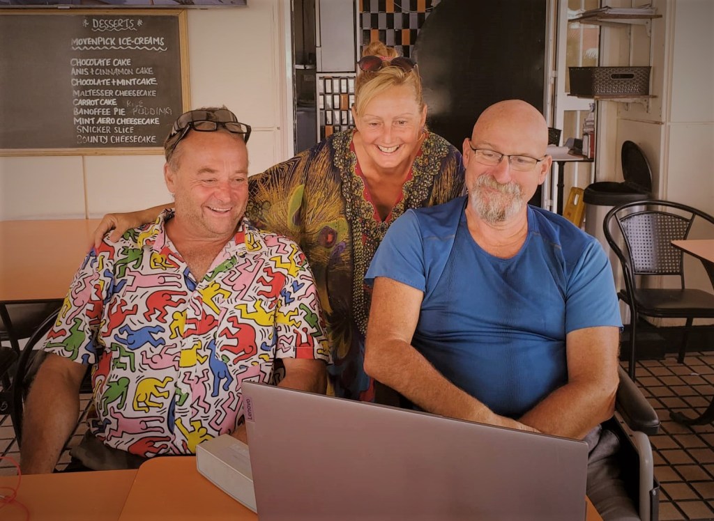 I söndags firade vi Greg på ett café intill sjukhuset. Inför dagen hade vi en alldeles särskild överraskning till honom. En video Styrman satt ihop med hälsningar från släkt och vänner från världens alla hörn. Härligt många bidrag lyckades vi får med och när videon var klar, blev den hela 17 minuter lång. Vi riggade upp datorn framför Greg och satte på filmen. I hans ansikte kunde vi tyda både glädje och skratt och inte minst förvåning. Presenten kändes helt rätt, för vad ger man en kille som just fått avbryta sitt seglingsäventyr på grund av sjukdom. En video, tänkte Styrman Pimpsten. Och så fick det bli. Tusen tack för alla bidrag, utan er hade filmen inte varit möjlig.