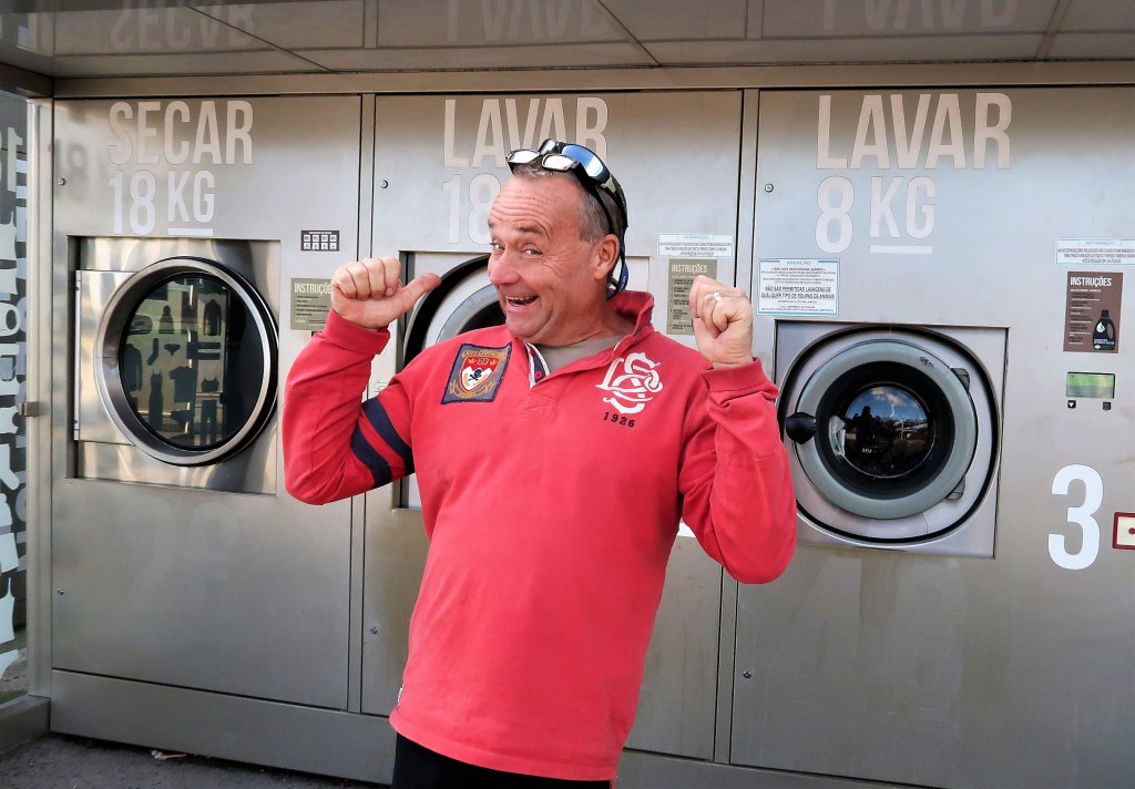 Häromdagen passade vi på att tvätta. Som regel tvättar vi för hand, i en hink. Framför allt sommartid fungerar detta fint, då färre och ”mindre” kläder behövs på kroppen (många bikini-dagar blir det, fast Kapten brukar förstås ha badskjorts). Lakan och långbyxor är dock bökigt att trycka ner i en femtonlitershink. Därför brukar vi någon gång i månaden söka upp en tvättautomat. Sådana tror vi knappt finns i Sverige, alla har ju på något vis en tvättmaskin i anslutning till sitt hem. Men ute på kontinenten är detta vanligt förekommande. Det finns tvätterier som är bemannade och de som är obemannade. Vi brukar föredra inrättningar där man får tvätta själv. Som regel blir det billigare och skönt är det när ingen behöver se ens smutsiga trosor. Priset för en normalstor maskin brukar variera mellan 3 och 6 euro. Men för att ändå göra något åt kostnaden, brukar vi hoppa över att torktumla. Den blöta tvätten bärs hem till Wilma och hängs på linor vi spänt upp mellan förstag och vant. Kan hända det ser taffligt ut, som om vi lever ett regellöst och kringflackande liv. Vilket i och för sig stämmer. Men frågar ni oss, tycker vi nog att vi är ett ordnat och organiserat svenskt par med utbildning, god ekonomi och gott uppförande. Vi menar (med full respekt för alla människor lika värde) …det är en avsevärd skillnad att frivilligt leva på små medel (med pengar på banken). Än att vara tvingad att vända på varenda krona för att klara överlevnaden. Ledsnar vi kan vi när helst vi önskar, segla hem och rätta in oss i leden. Med jobb, bostad och bil.