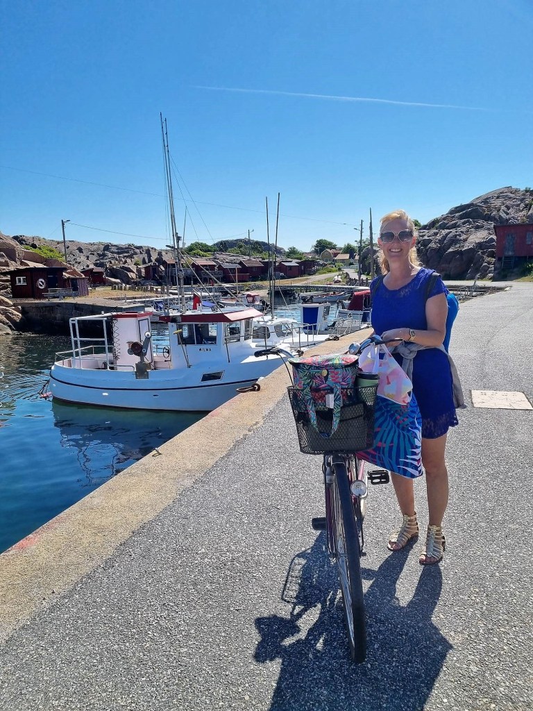 Jag lånar cykel och tar mig runt…fiskebåten i bakgrunden heter Wilma…
