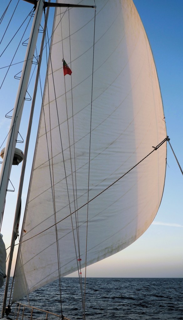 När jag och Konstruktören tidigt i mörkret lämnade Cascais och satte kurs söderut för att segla i samma spår som Tjoppe och jag gjorde i det som skulle bli vår sista seglats tillsammans, möttes vi av delfiner. Jag grät, vilket välkomnande tillbaka till havet. Nu rufsar havets vindar åter i mitt hår. Jag befinner mig återigen på en båt med äventyr i lasten. Det finns en tolkning av låten ”Wonderful life” med Katie Melua. Texten skulle kunna vara skriven av mig, eller för mig; ”Here I go out to sea again, the sunshine fills my hair…”. Läs texten, lyssna gärna till låten och var med mig en stund. Tror säkert ni känner lite av det jag känner…