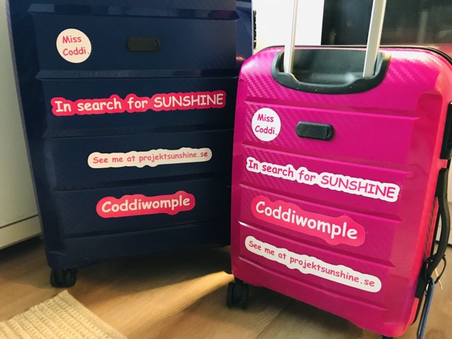 Min kloka dotter sa; ”Mamma, jag känner mig lugnare till sinnet när jag vet att du är iväg och har det bra”. Hon måste jobba några av juldagarna. Att då veta att mamma sitter ensam, ger ingen god känsla. Så med det sagt står väskorna packade och flyget lyfter i eftermiddag. Och som en liten julklapp till mig själv, har jag kostat på mig en ny resväska eftersom hjulen gått sönder på den gamla. Och då det var halva priset, fick det även bli en kabinväska. För att minska på risken att någon tar miste på mitt bagage och deras, har jag valt att pimpa upp väskorna med Coddi-tema. Here she comes… Miss Coddi on the Go… Så ska väl årets jul snart vara avklarad. Och för min del blir det den slags jul jag bäst känner igen; med en liten burk sill och en ”janssons frestelse”. Ombord på segelbåt någonstans i värmen. Och definitivt inte ensam!