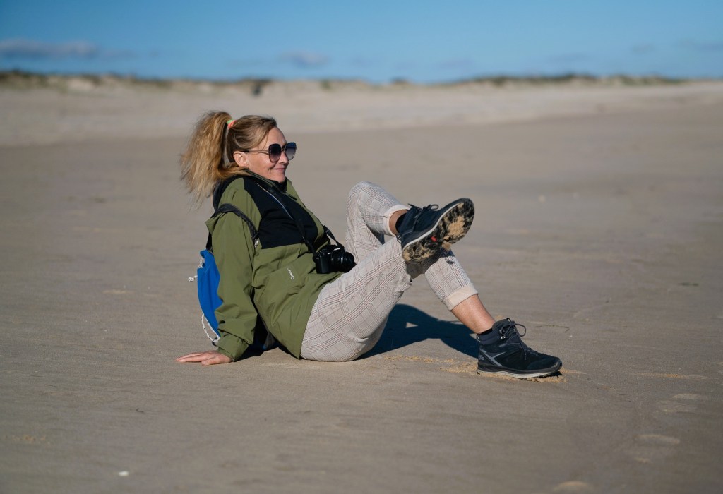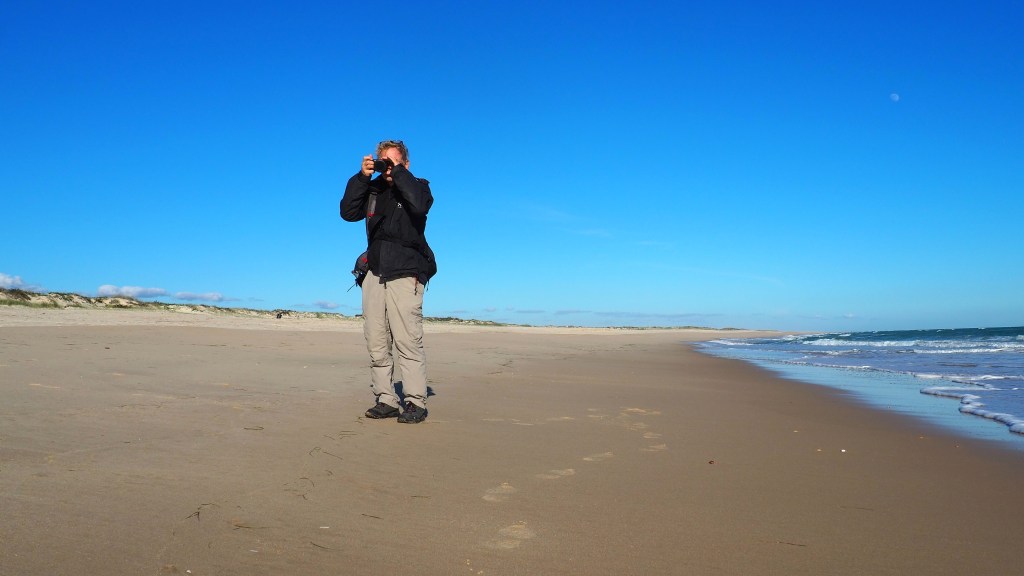 Efter ett gäng dagar med hårda vindar kunde vi äntligen ta oss i land. Detta firade vi med en härlig promenad på ön Culatra. Lite extra påklädda eftersom temperaturen droppat något, följde vi kustremsan som vetter ut mot havet. En vandring på tre timmar och i bästa Coddi-anda passade Konstruktören på att fånga mig på bild…