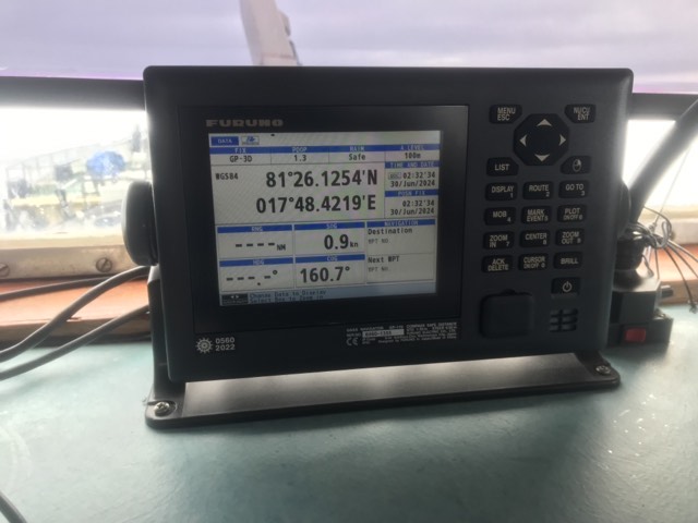 Jag har inte hunnit kolla vart vi befann oss på kartan där packisen tog vid, men här är positionen…