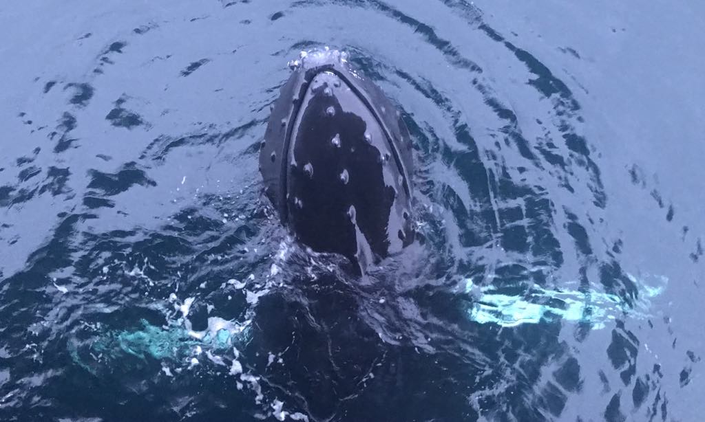 Även om jag inte hunnit följa med ut så får jag en stor portion av den hisnande naturen ändå, mycket går att uppleva från fartyget. Som häromdagen då en knölval, nyfiken och kontaktsökande kom och hälsade på. Med långsamma rörelser simmade den fram och tillbaka och den gned sin stora kropp mot fartygsskrovet. Sannolikt i ett försök att skrapa bort några av de många havstulpaner (barnacles) som valt att bosätta sig på den enorma kroppen. Väl medveten om vår närvaro uppehöll sig knölvalen länge och emellanåt rullade den runt visade oss dess vackra mage. Så imponerande. Ibland dök den upp med sitt huvud ovanför vattenytan och stannade till, liksom för att hälsa.