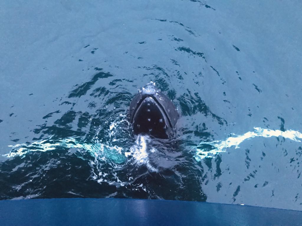 En knölval kan bli upp till arton meter lång. Den är vacker och majestätisk men med en mindre angenäm doft; när den tömmer sitt andningshål på vatten och luft så sprider sig en stank som närmast kan liknas vid ruttet ägg. Jag menar det, man kväljer och håller på att kräkas om man oturligt nog står precis intill.