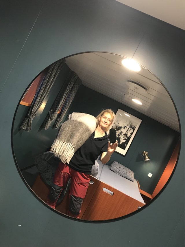 Nu lutar jordens rotationsaxel så långt från solen att den inte orkar upp ovanför horisonten. Allt vi får i form av dagsljus är en kort stund av gryning och skymning mitt på dagen. Förändringen har gått fort, på några få veckor. Och förutom det uppenbara att det mesta tiden är mörkt runt fartyget, så märker jag det även på hur kroppen reagerar; med förhöjda melatoninnivåer i kroppen som inget solljus bryter ner så bär jag ständigt på känslan av att det skulle vara skönt att sova lite till…