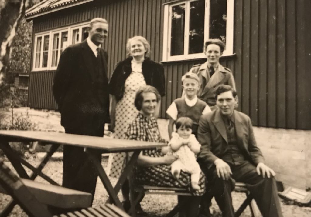 Först ut ett fotografi som gissningsvis är från tidigt 40-tal. Kvinnan som sitter med barnet i knät är min mormor och jag tycker mig se en likhet mellan henne och mig; över näsa, mun och haka. Och barnet som sitter i mormors knä är min mamma (som på fotot är väldigt lik min storasyster som baby). Mannen som sitter bredvid mormor är min morfar och de övriga är släktingar (som jag absolut vet vilka de är, har även skrivit om dem tidigare på bloggen).
