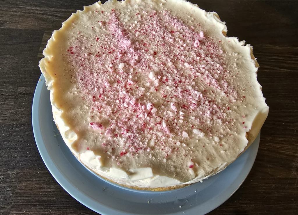 Jag håller på med ett litet projekt och här har jag testat baka mitt eget recept på polkagris-cheesecake…