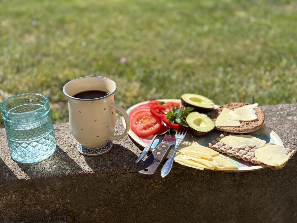 Jag bor i en lägenhet men har ändå en villatomt att hänga i – på baksidan av huset slår jag mig ner när solen skiner, för att vila, fika och fånga lite D-vitamin (eftersom det kan bli brist uppe i Arktis…)