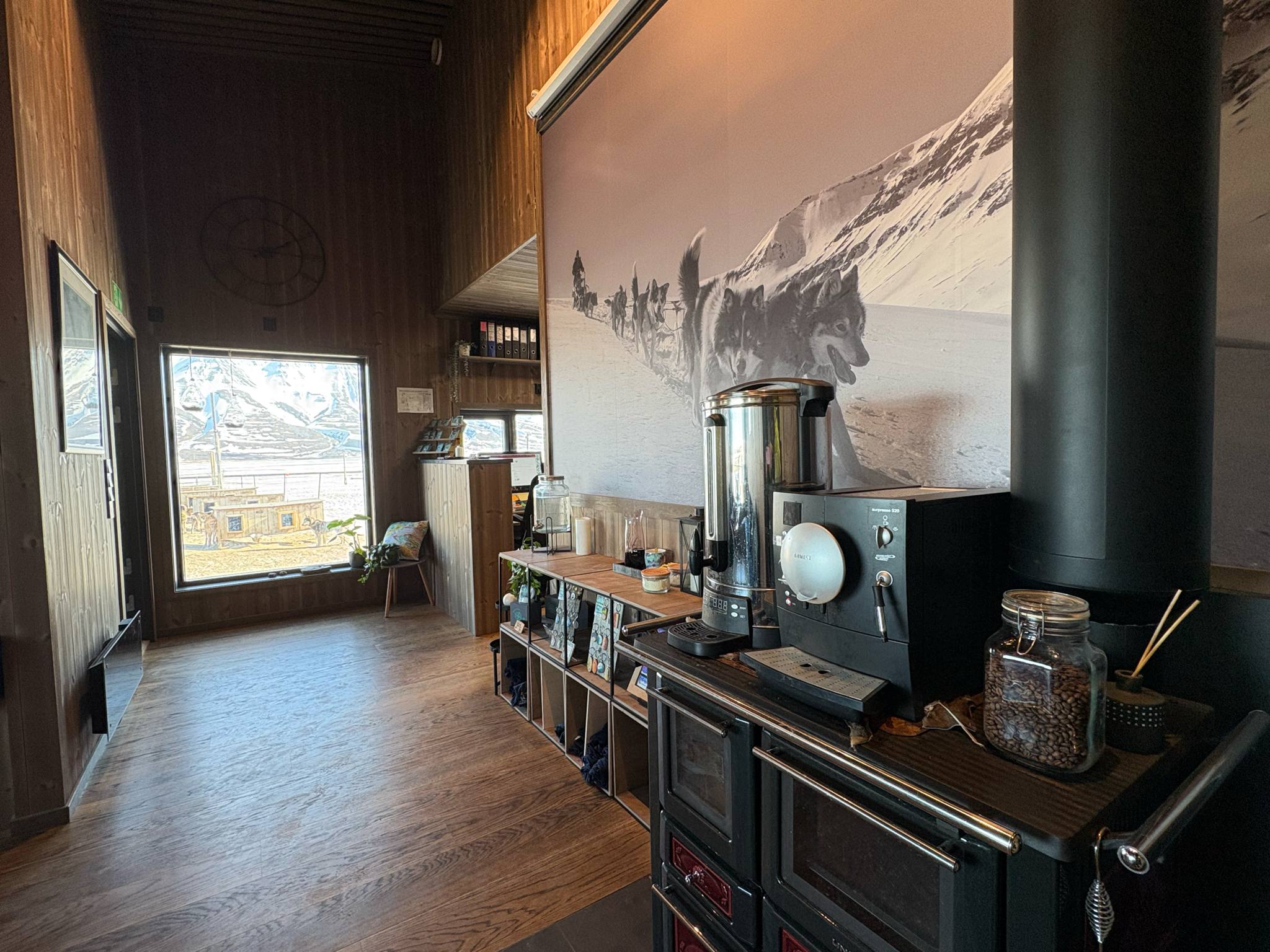 Såklart blev det ett besök hos världens nordligaste hundcafé, Café Huskies. Förutom att de har gott kaffe, te och fikabröd så strosar lurviga huskies runt mellan borden.
