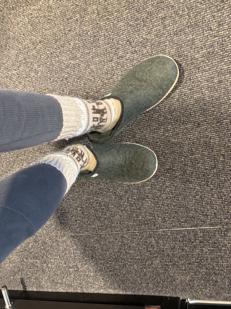 På de flesta ställen på Svalbard måste man ta av sig skorna när man kommer inomhus, på hotell och museer och i kyrkan och turistbyrån för att nämna några. Inte matbutiken dock, det skulle nog riskera bli ett sko-inferno annars. Anledningen är att det är ett sätt att hålla smutsen borta och golven snöfria. Oftast finns tofflor att låna så man slipper frostbitna tår ifall det skulle vara kallt (men inomhus är det generellt varmt och gott.