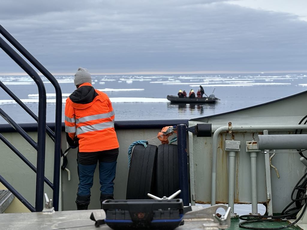 Is och snö i Arktis… Merituuli jobbar ofta ute medan jag står inne i byssans värme…