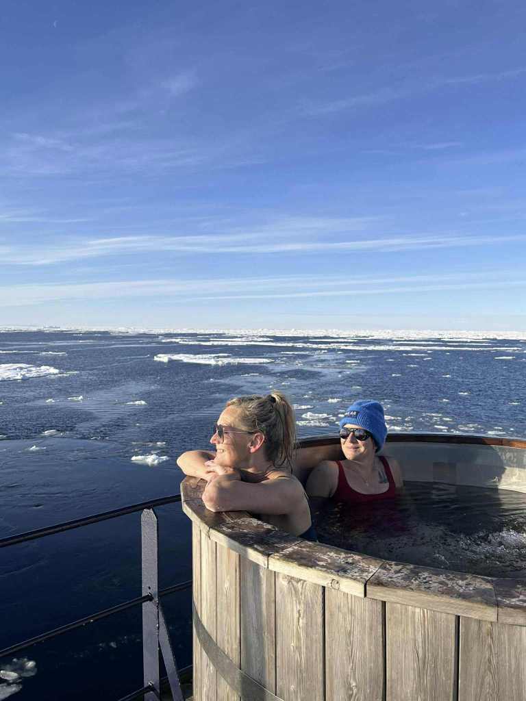Kan ni fatta vilken osannolik plats jag befinner mig på? Att ens ta sig till denna avlägsna vrå av Arktis, dit bara ett fåtal någonsin kommer, är unikt i sig. Men att dessutom sitta i badtunnan med Merituuli och samtidigt se en isbjörn vandra över isen? Det känns lika osannolikt som att lyckas fånga en pingvin på kroken i Sahara.