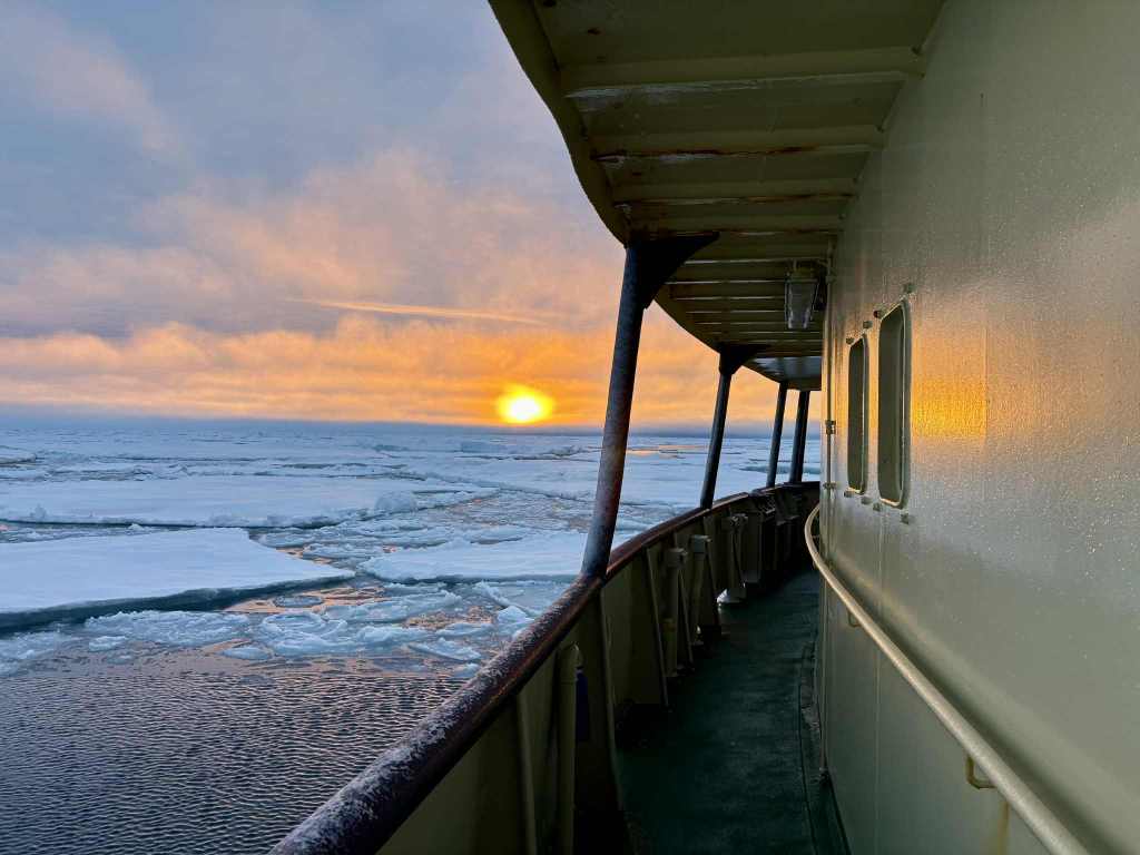 Att det ens är farbart där vi befinner oss är ingen självklarhet; packis och lokala glaciärer påverkar navigeringen här. Därför är det ytterst få fartyg som tar sig hit, eftersom utmaningarna är alltför stora för de flesta. Den korta isfria säsongen varar dessutom bara från juli till september.