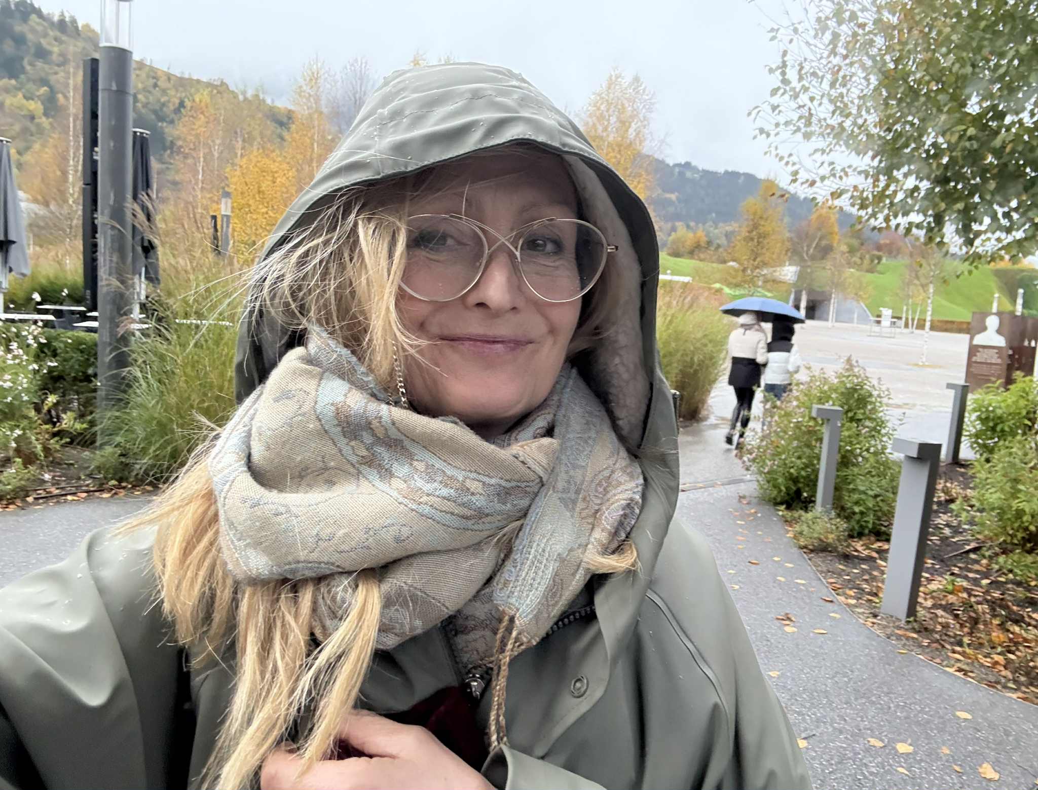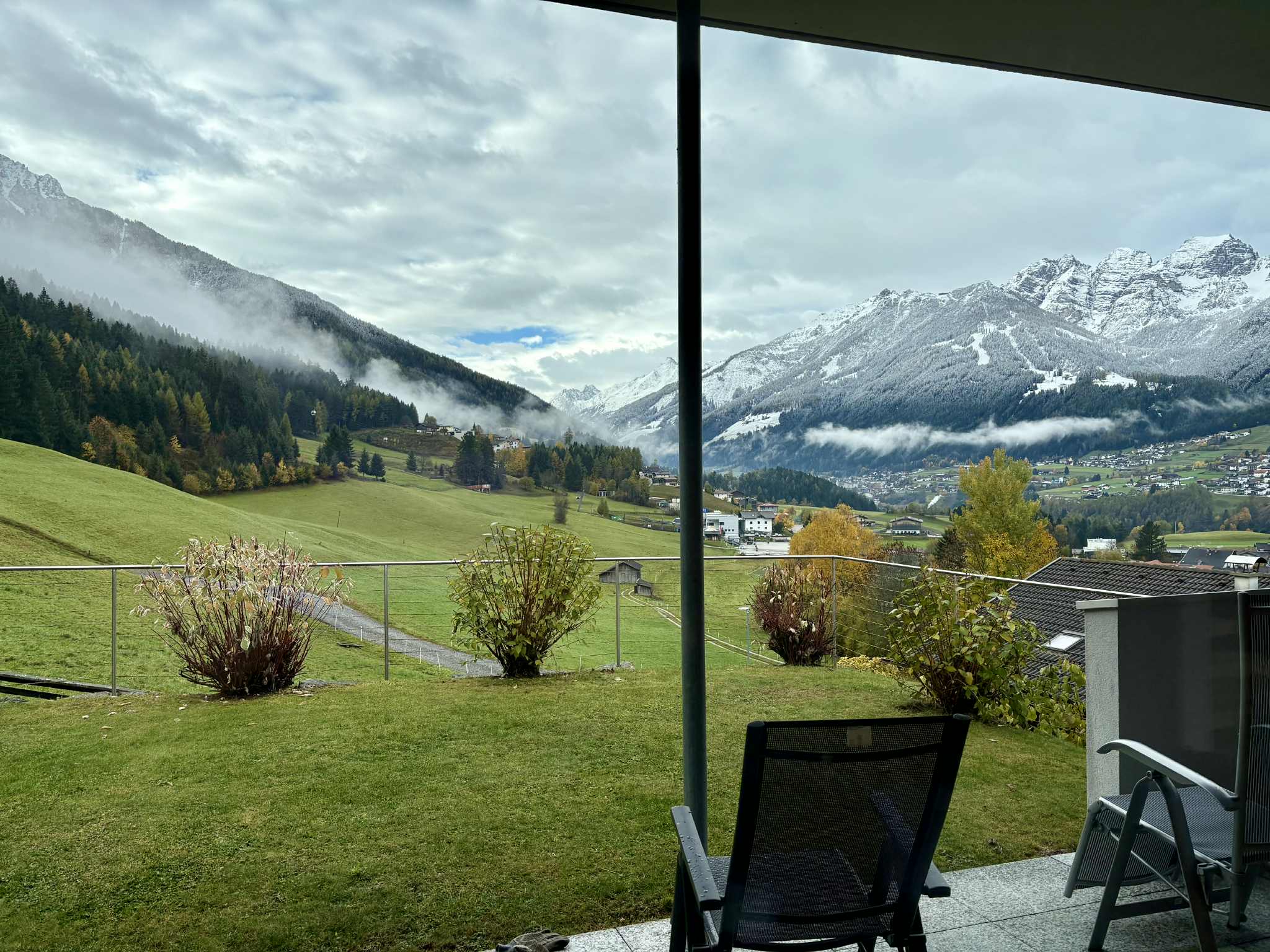 På Miss B inrådan hade jag köpt mig en flygstol intill fönstret, för att få en glimt av denna lilla alpinska stad från ovan. Och det var som att flyga rakt in i ett vackert vykort – naturen här är förkrossande vacker. Som om inte det räckte: väl hemma hos Miss B ligger hennes hus i sluttningen nere i dalen, omgivet av pittoreska hus som är typiska för trakten, med utsikt över träden i höstskrud strax nedanför kalfjället. Det är min utsikt här från frukostbordet när det nu är Miss B som för omväxlingsskull serverar mig ett ägg om morgonen.