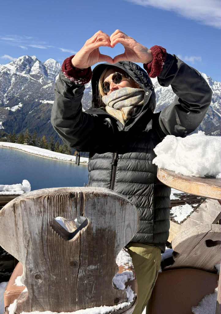 Men nu var det inte skidor vi skulle åka – snön var nyfallen och backen inte öppen än. Det finns så mycket annat som skidanläggningen bjuder på, som vandring med alpvyer, plaskande lek vid sjön, eller bara sitta med en kaffe och njuta av stillheten. Det kom att bli dag jag sent kommer att glömma och jag är nog lite kär; i bergen, i landskapet som bjuder på vinterskrud och i alla vackra upplevelser jag får vara med om. Jag påminner mig ideligen om vilket privilegium det är att vara frisk, ha vänner och möjligheter.
