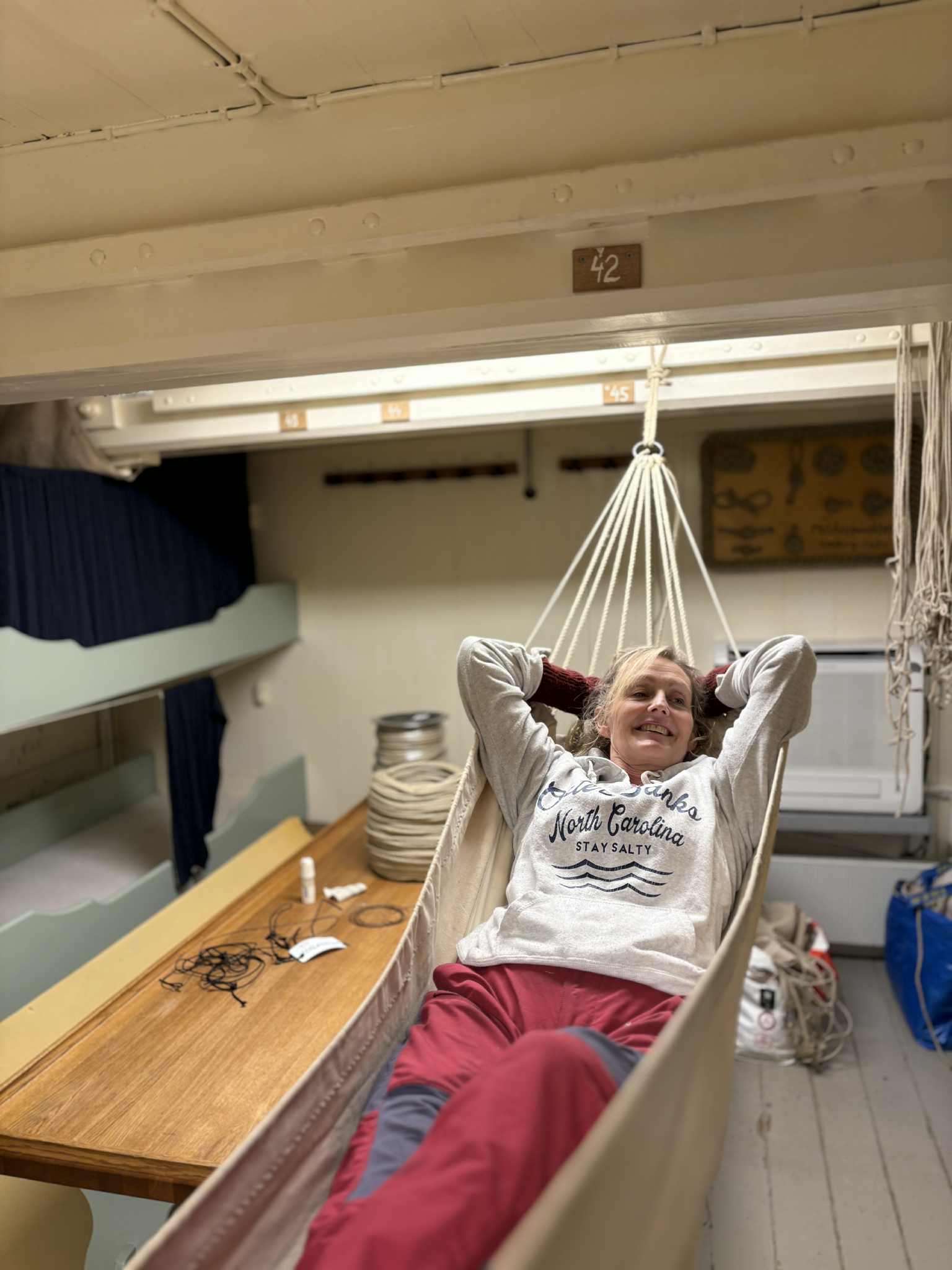 Bell visade mig och kollegan runt och jag fick känna på hur det var att sova i hängkoj…