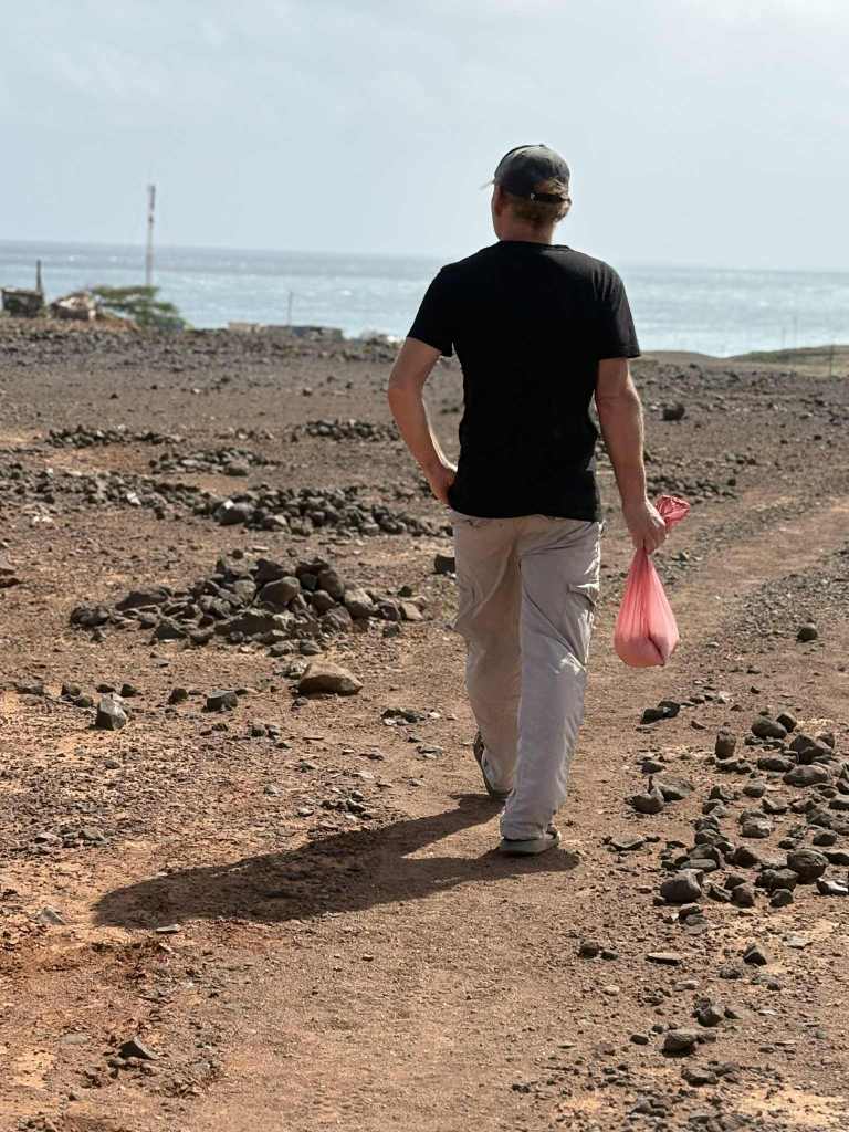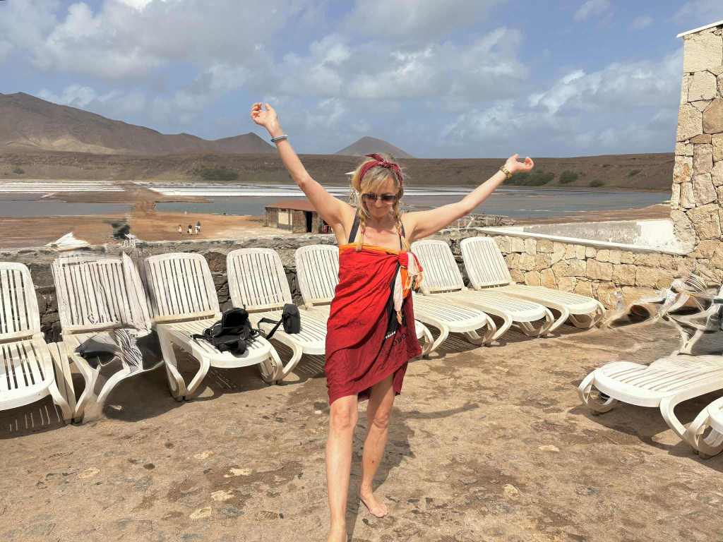 Med en ledig dag för Hanna passade det fint att göra en utflykt ihop. Hon hade hört talas om den salta vulkankratern där man kan bada och flyta runt som en kork. Frågan var bara när vi skulle ses. Jag föreslog klockan 10.00 GMT, med förtydligandet att GMT här på Kap Verde står för ”Gambian Maybe Time” – eftersom punktligheten är lite mer flytande här. (GMT står annars för ”Greenwich Mean Time”)