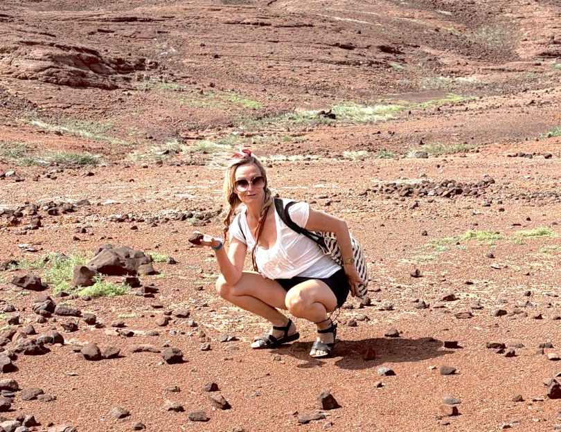 Med en ledig dag för Hanna passade det fint att göra en utflykt ihop. Hon hade hört talas om den salta vulkankratern där man kan bada och flyta runt som en kork. Frågan var bara när vi skulle ses. Jag föreslog klockan 10.00 GMT, med förtydligandet att GMT här på Kap Verde står för ”Gambian Maybe Time” – eftersom punktligheten är lite mer flytande här. (GMT står annars för ”Greenwich Mean Time”)