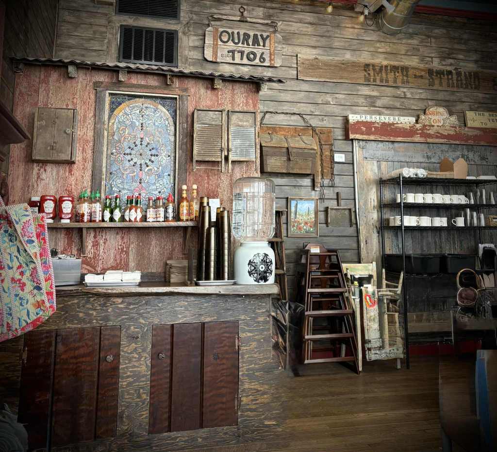 Tredje och sista dagen på vår utflykt började stilla med en brunch i Ouray. Innan vi bar iväg igen köpte jag två tekoppar; det är min vana nu, att bära med mig ett litet stycke från varje land jag besöker, i form av något så enkelt som en kopp att dricka te ur. Därefter hoppade vi in i bilen och körde på vägen alla pratar om; Million Dollar Highway…